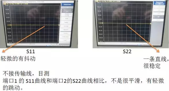还是这台仪器,我们连接上传输线,再来看看S参数曲线和好的仪器有什么差别。